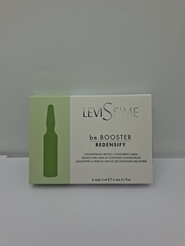Las ampollas Levissime be.Booster Redensify son un concentrado facial diseñado para combatir las arrugas verticales y la pérdida de volumen en la zona del rictus y el contorno labial.